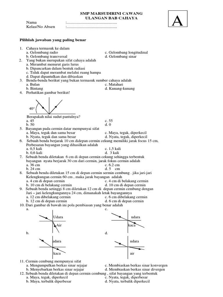 Latihan Soal Ipa Cahaya Dan Optik Kelas 8 Smp Kurikulum 2013